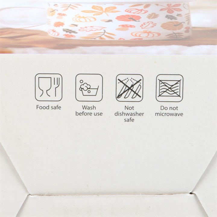 Put yourself in the seasonal spirit of Autumn with this chunky mug, perfect for sipping hot tea and of course the occasional pumpkin spice latte! Printed with a leaf and pumpkin design in autumnal shades of orange and red, this mug is sure to conjur nostaliga as a favourite piece that can be used year after year. Do not microwave. Handwash only. 480ml.