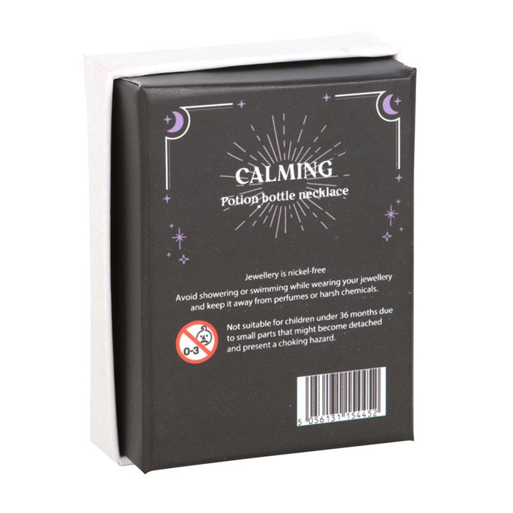 Give the gift of crystal magic with this miniature potion bottle necklace. With natural amethyst crystal chips and a cork stopper, this necklace serves as a spellbinding accessory while calming nervous energy and promoting inner strength. Presented in a matching gift box and perfect for that special witch in your life. Plastic bottle on a nickel-free stainless steel chain.